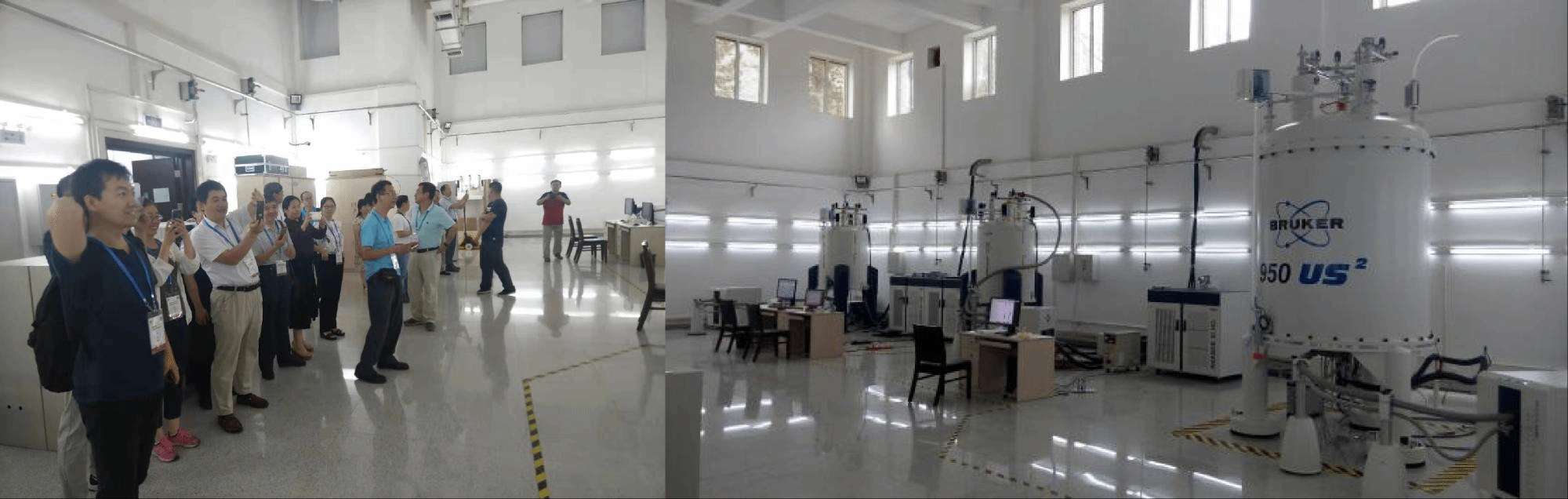 下午的报告结束后,南开大学来访的16位老师在金长文教授的带领下,参观了北京核磁共振中心。北京核磁共振中心最初是由国家科技部、教育部、中国科学院和总后卫生部共同投资,依托于麻豆精品秘 国产传媒建立的国家公用大型仪器设备开放实验室。之后,蛋白质科学研究(北京)国家重大科技基础设施核磁共振平台也加入北京核磁共振中心。目前中心拥有10台液相核磁共振谱仪,其中有我国唯一一台最高场的950MHz液相核磁共振谱仪、我国首台高场高分辨率800MHz液相核磁共振谱仪和首台固液共用的800MHz核磁共振谱仪。另有一台600MHz宽腔固相核磁共振谱仪、三台600MHz液相核磁共振谱仪、一台500MHz和一台400MHz液相核磁共振谱仪。